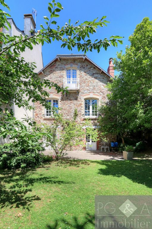 RENNES Thabor - Dans une rue très recherchée à quelques pas du Thabor, cette maison en pierre de 1923 a conservé le charme de l'ancien et bénéficie donc de beaux parquets chênes dans les pièces principales et les chambres, de cheminées en marbres et de sols en petits carreaux de ciment dans l'entrée et la cuisine. Hauteurs sous plafond de 2.90 m pour les pièces de vie. Au coeur d'un jardin de 375m², sans vis-à-vis, cette maison offre 3 niveaux de vie comprenant: 2 salons, cuisine, salle à manger, 4 chambres, 1 salle d'eau, 1 salle de bains, 1 bureau sous combles. Cette bâtisse de charme offre un vaste potentiel. (4.81 % d'honoraires TTC à la charge de l'acquéreur.)