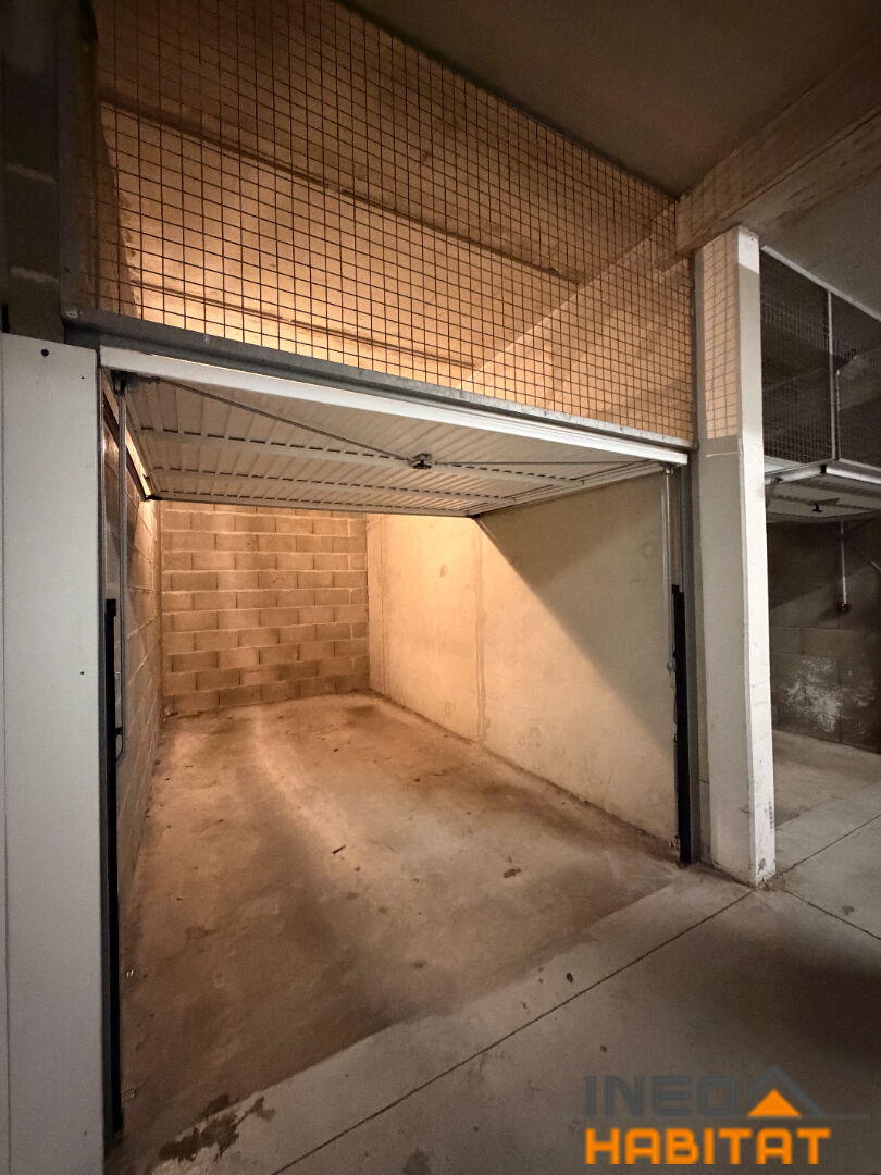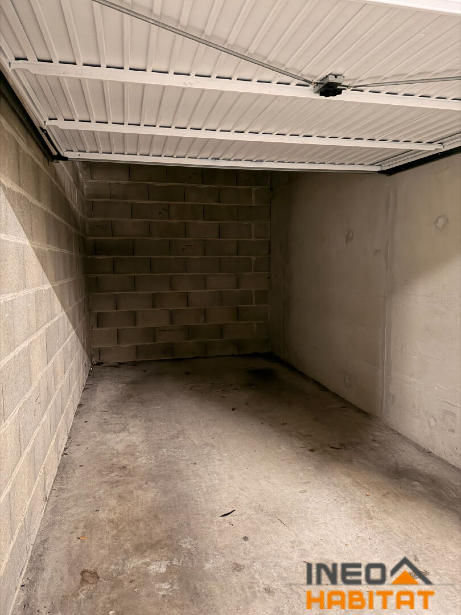 BOX fermé standard, adapté pour voiture, moto ou stockage, situé en sous-sol d'une copropriété sécurisée.