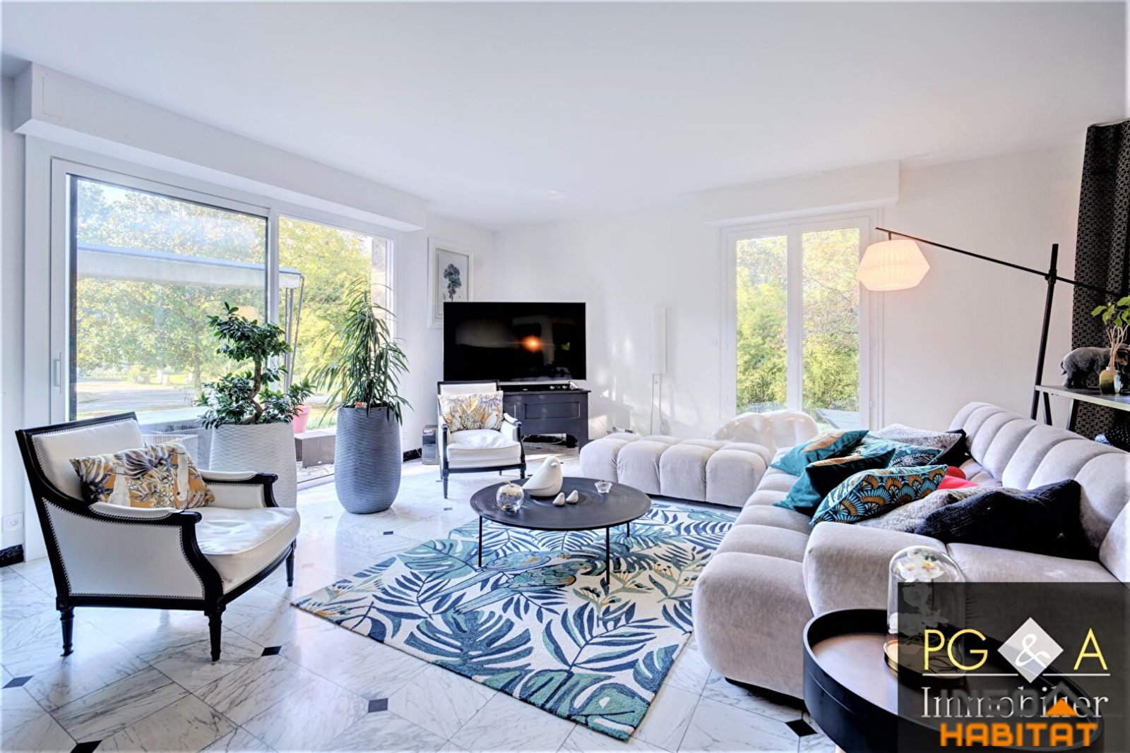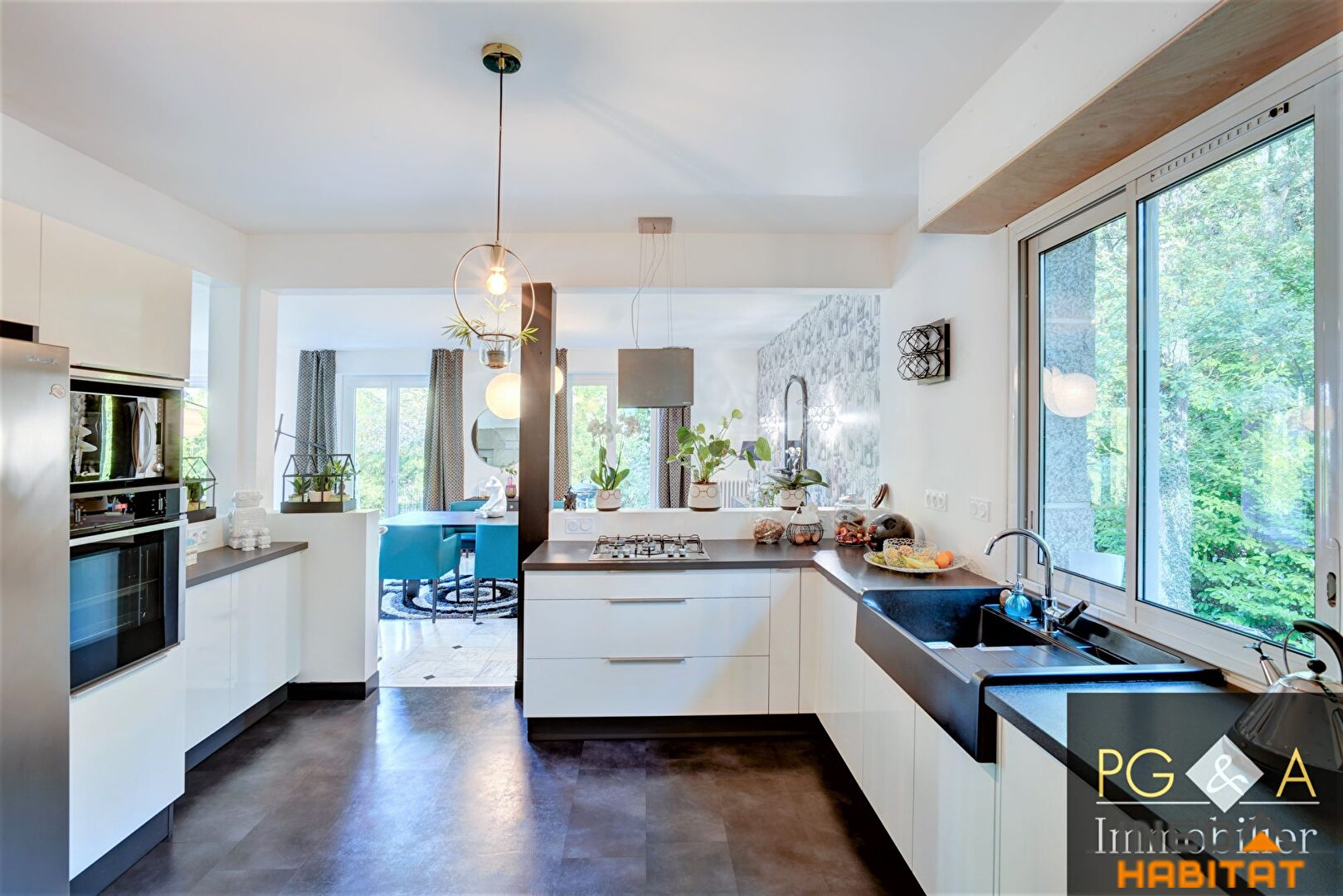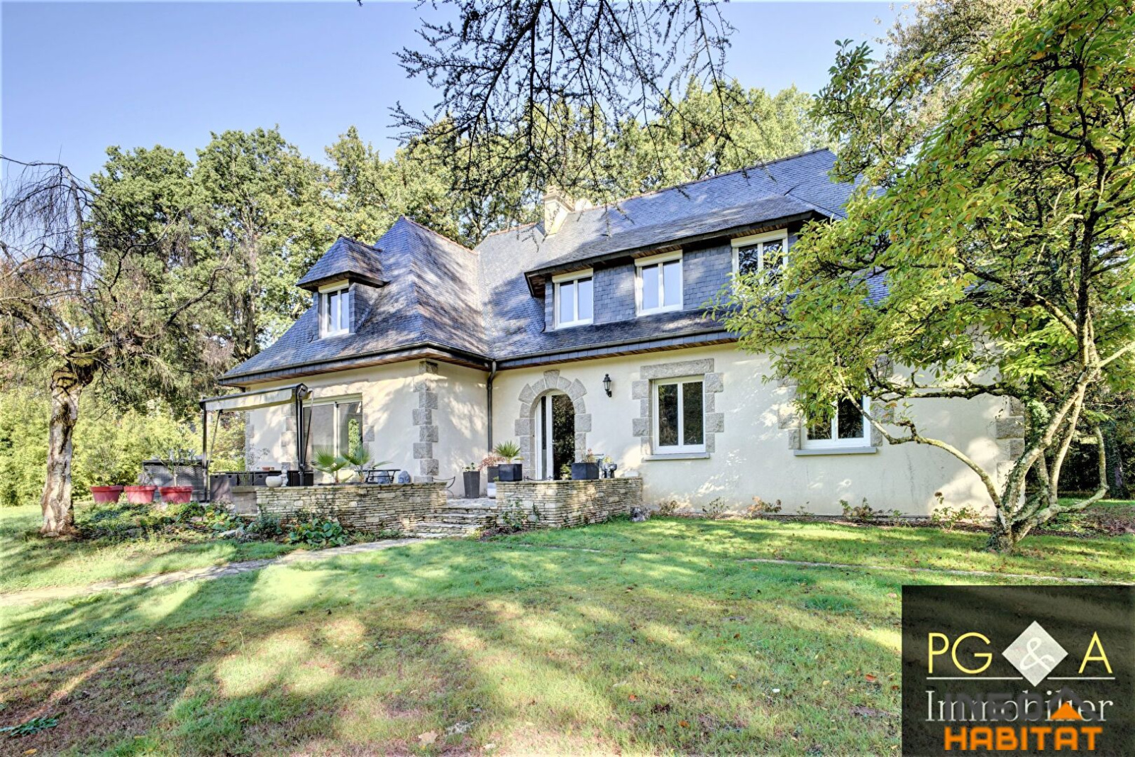 VENDU PAR PGA - VERN SUR SEICHE - Dans un domaine privé et sécurisé, cette maison d'architecte a bénéficié d'une rénovation complète décorative ainsi qu'en termes d'efficience énergétique. La maison comprend: Hall d'entrée, double séjour orienté ouest et sud avec cheminée, ouvert sur une terrasse au sud, cuisine semi-ouverte, aménagée et équipée, suite parentale avec salle de bains et douche, bureau.A l'étage: 1 chambre avec accès privatif à une salle d'eau, 3 chambres, dressing, grenierSous-sol complet offrant double garage, cellier, chaufferie.Pompe à chaleur, double vitrage récent, isolation sous toiture et dans les combles ainsi que du sous-sol.