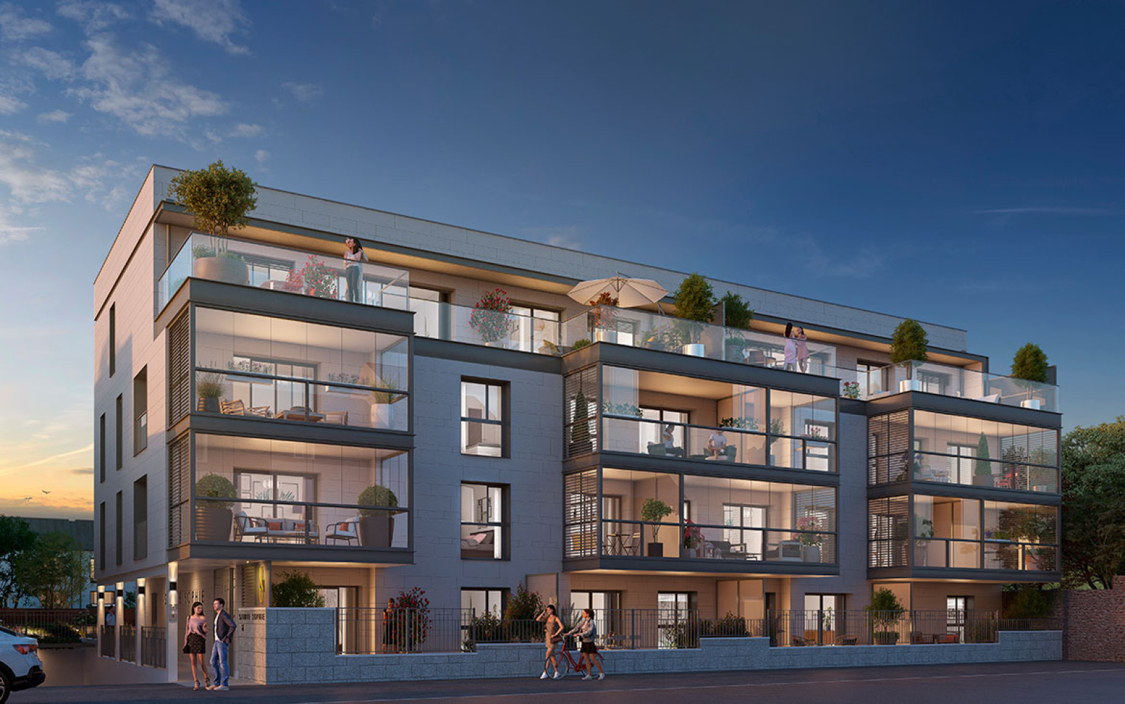 Rennes (35700)Ce projet ambitieux réunissant 15 appartements, 2 maisons d’architecte et 1 villa a été dessiné en priorisant à chaque instant l’intimité et le bien-être de chaque résident.Situé à 10 minutes à pied de la place Hoche (centre commercial La Visitation). Vous profiterez de nombreux commerces de proximité ainsi qu’un accès facile aux transports en communs avec la ligne B du métro à seulement 400m. Prestations haut de gamme et plans sur-mesure sont les maîtres mots de ce programme. Les jardins et espaces communs sont travaillés dans les moindres détails et tout en respectant l’environnement existant.